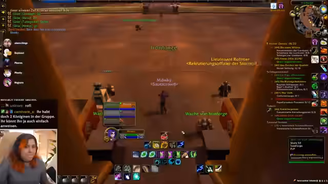 01:23:26Der Streamer analysiert Quest-Entlohnungen im Hinterland und stellt fest, dass diese für die Horde effizienter sind, aber für die Allianz unattraktiv. Es werden Farm-Ziele wie Kräuter und Rieseneier genannt. Für aktuelleQuests fehlt noch ein Halterang, der von Gildenmitgliedern beschafft wird. Eine vorteilhafte Nebenquest mit einer Stoppuhr ist erwähnt. Schwierigkeiten mit dem Aggro-Management im Dungeon Mauki werden diskutiert, wobei der Fokus auf der Stabilität des Healers oder Schadensdealers liegt.