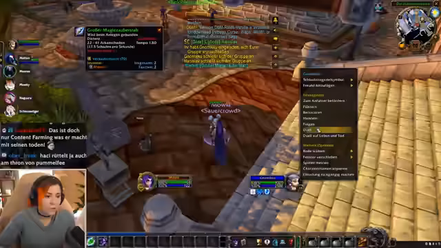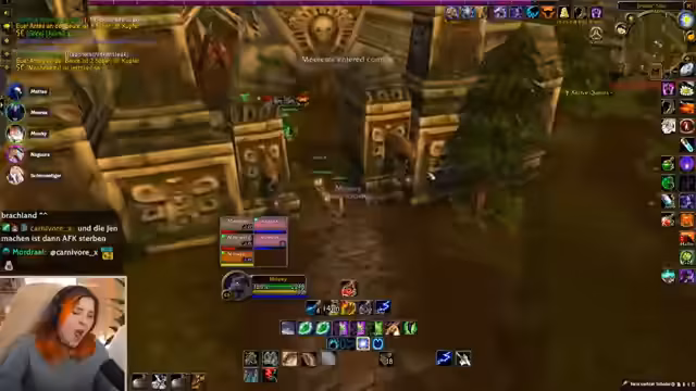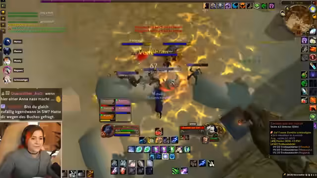 05:33:42Die Gruppe kämpft sich durch eine Zone mit starken Gegnern, aber ein Spieler stirbt und verliert wichtige Gegenstände. Eine Unterbrechung des Spielgeschehens erfolgt, als einer der Streamer eine Nachricht über eine potenzielle Rolle bei einem WoW-Event namens Animania erhält, was in eine ausführliche Nostalgie- und Lore-Diskussion über alte deutsche WoW-Geschichte mündet. Die Stimmung wechselt vom gaming-spezifischen Thema zu einem eher persönlichen und historischen Austausch.