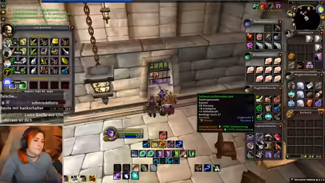 09:40:23Ein zentrales Thema war die Unterstützung von Mitspielern durch die Gildenbank. Der Streamer bot gezielt Items an, die für bestimmte Berufe oder Charakterklassen benötigt wurden. Nachdem er zunächst Hilfe anbot, wurden vermehrt Anfragen gestellt. Es wurde über den Umgang mit den Ressourcen der Gildenbank, insbesondere der Zwergenbank, diskutiert, die angeblich leer war, weil keine Spieler Items dorthin spendeten, was zu einer Diskussion über das Bankmanagement führte.