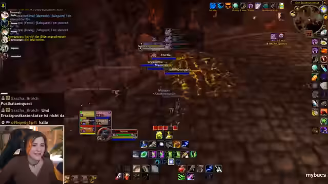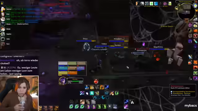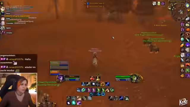 08:32:58Der Streamer spielt mit seiner Gruppe verschiedene Dungeons und Instanzen. Es wird die Dynamik in der Gruppe beschrieben, bei der der Streamer primär als DPS (Damage per Second) agiert. Man spricht über die Strategien, Bosskämpfe zu meistern, und über die Herausforderungen, wie zum Beispiel das Management von Manatränken, das überleben von Adds und das koordinierte Vorgehen. Während des Runs werden Gegenstände gelootet und es werden Entscheidungen getroffen, wer welche Items erhalten soll, wobei der Streamer seine Rolle als Bank und Verteiler der Ausrüstung betont.