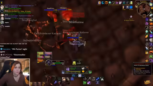 04:25:55Die Hauptaufgabe für die nächste Phase ist der Dungeon Strat Undead, auf den alle seit dem Morgen warten. Es werden Pläne für den Rest des Tages geschmiedet, darunter das Farmen von Quest-Items wie einem bestimmten Trinket von einem Rare-Mob. Auch der Bedarf an einem DPS für die neue Gruppe wird angesprochen und nach einem passenden Spieler gesucht. Dabei wird auch eine alternative Boss-Strategie für einen besonders nervigen Boss diskutiert.