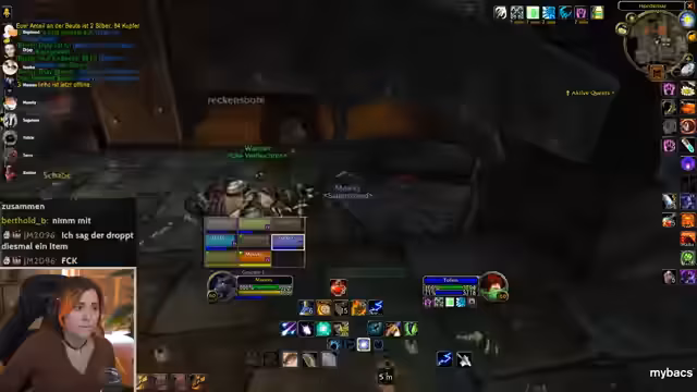 04:47:58Zu Beginn des Streams konzentriert sich der Streamer auf die Vorbereitung für einen Dungeon-Run, wobei er mehrere Questen verwaltet. Er äußert Frustration darüber, dass er Quest-Fragmente nicht alle zusammen abgeben kann, und sucht spezifisch nach einer Dungeon-Quest von Smokey LaRue. Nachdem er diese findet, bemerkt er, dass sein Questbuch bereits voll ist und entscheidet, Pfeile nachzukaufen. Die Gruppendynamik wird durch Diskussionen über Rollen wie den Tank, der Aggro hält, und einen Warrior, der Mob taunt, deutlich.