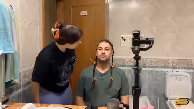06:12:18Die Hauptaufmerksamkeit richtet sich nun auf Daniels Umgestaltung. Er wird mit Extensions in den Haaren ausgestattet, was Hilfi als 'Hand of Blood'-Moschpit beschreibt. Das Problem ist, dass sich die Schmetterlinge und Schleifen an den Zöpfen nicht abschneiden lassen. Die Szene ist geprägt von chaotischen Bemerkungen und Versuchen, die Haare mit Kochen zu züchteln, während Daniel sich immer wieder über die Manipulationen beklagt.