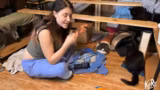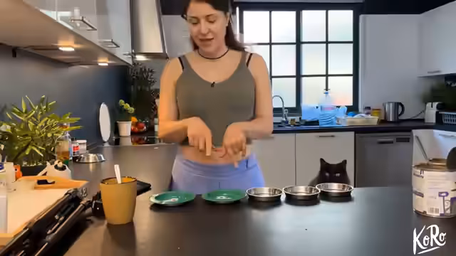 01:35:53Die Aufmerksamkeit richtet sich wieder auf die Katzen. Die Streamerin versucht, den zurückhaltenden Espresso zu füttern und streichelt dabei die anderen Katzen. Für die Katzen gibt sie eine Matatabi-Frucht, die denselben Effekt wie Baldrian hat und die Katzen zum Schnurren bringt. Die Katzen sind sichtlich entspannt und genossen die Streicheleinheiten und den Geruch der Frucht. Es wird gezeigt, wie sie für die Katzen Wasser auffüllt und sie sich dabei ums Laufen bringen, was eine humorvolle Szene darstellt.
