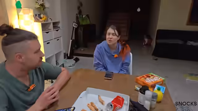 04:10:56Es werden Vorbereitungen für den Selfcare-Tag getroffen, während über verschiedene Möglichkeiten zur Mottenprävention gesprochen wird. Daniel, der Partner, hat anscheinend Probleme mit den Zähnen, was seine Essgewohnheiten beeinflusst; er lutscht beispielsweise Toffifee um die Nuss herum ab und spuckt diese aus. Dies führt zu Diskussionen über Geschmack und Vorlieben. Der Streamer bereitet einen Knabberteller vor, wobei Daniel aufgrund seiner Diät und Zahnprobleme eingeschränkt ist. Es wird über die Geschmacklosigkeit von Toffifee philosophiert und ein Selbstexperiment mit Wasabi-Nüssen durchgeführt, die als pikant empfunden werden. Die Suche nach passenden Gläsern für Getränke und die Erwähnung von 'Pik Ameise' sorgen für humorvolle Verwirrung. Ein 'Wellnessgetränk' mit Agavensirup wird zubereitet, das ästhetisch ansprechend aussehen soll, obwohl ein Missgeschick mit der Kamera das Design stört.