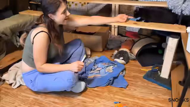 01:33:55Während des Streams findet eine spontane Reinigungsaktion unter dem Sofa statt, bei der verschiedene Gegenstände wie Flaschenverschlüsse, Müll und eine Socke gefunden werden. Es wird humorvoll erklärt, dass dies typisch für das Verhalten der Katze Coco ist, die gerne Dinge sammelt und in ihren Nestern versteckt. Eine offene Giotto-Packung wird ebenfalls gefunden, die glücklicherweise nicht von den Katzen geplündert wurde. Espresso, eine andere Katze, ist von der Reinigungsaktion verschreckt und zögert, wieder in den Raum zu kommen. Der Streamer versucht, die Katze zu beruhigen und versichert ihr, dass sie jederzeit willkommen ist. Es wird deutlich, dass die Katzen einen großen Teil des Streamer-Alltags ausmachen und ihre Eigenheiten für Unterhaltung sorgen.