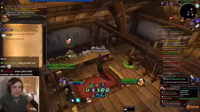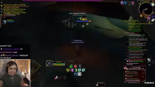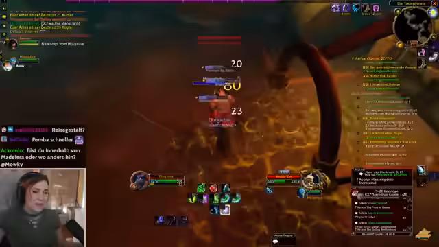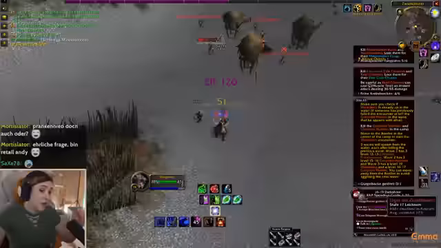 05:02:32Im Spiel werden verschiedene Quests abgearbeitet, darunter die Einlösung eines Briefes in Stormwind. Der Fokus liegt auf der Jagd nach Elite-Mobs, wobei der Streamer auf taktische Vorgehensweisen wie das Taggen von Mobs oder das Nutzen von Unsichtbarkeit eingeht. Die Effizienz des Damage wird bewertet, besonders im Vergleich zu den eigenen Begleitern, und gezielt werden bestimmte Mobs und Helden für den Progress farmen. Die Jagd nach seltener Beute, wie zum Beispiel einem seltenen Mob der Stufe 27, wird als potenziell riskant, aber lohnend erachtet.