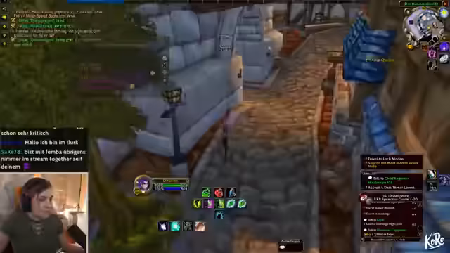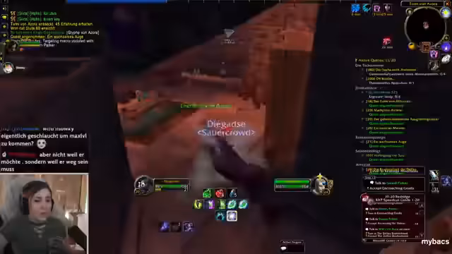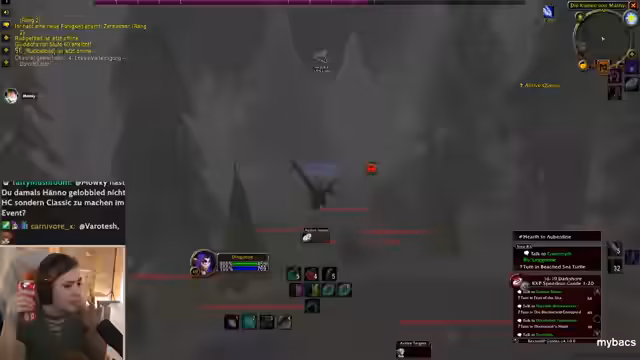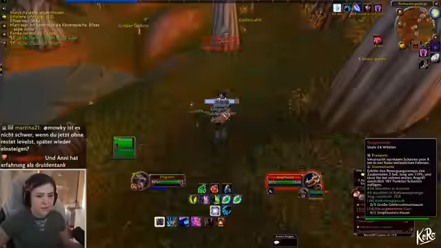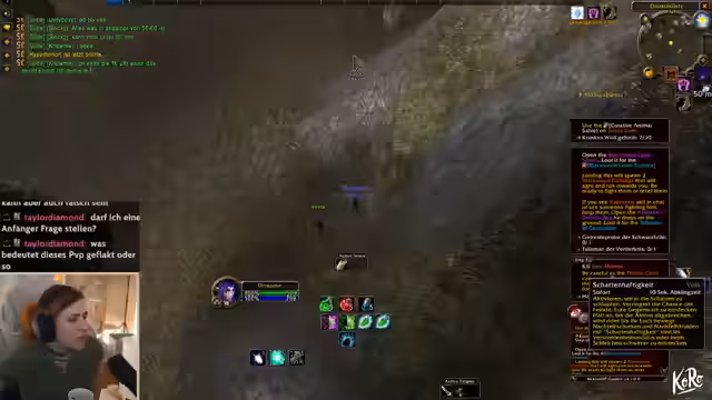 00:08:24Es folgen Gespräche über spieltechnische Details, zum Beispiel ein Rogue als gute Klasse für Dungeons wie Hölle von Hahnmuh. Geplant ist ein Raid bei Nagura und ein Suferrack. Der Streamer erklärt die Funktionsweise von PvP-Flags in World of Warcraft: Spieler werden in einen PvP-Modus versetzt, wenn sie von Wachen der gegnerischen Fraktion entdeckt werden, was sie angreifbar macht. Es wird diskutiert, ob man mit einem Level-10-Charakter in den Dungeon gehen kann und die Gruppenbildung wird thematisiert.