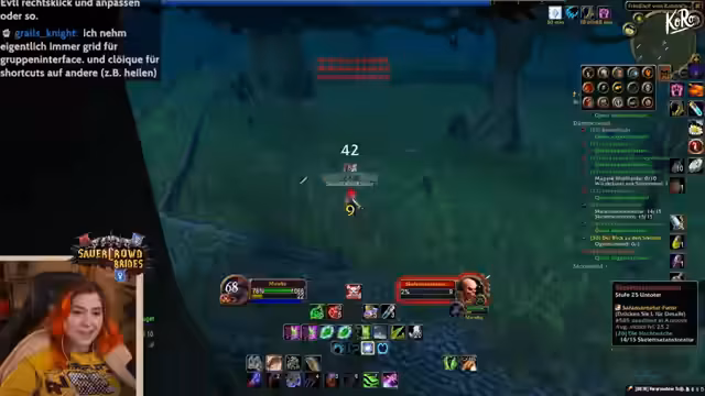 04:03:59Der Streamer navigiert durch das Labyrinth der Instanz 'Hüldnitz', das er als 'Arsch' und 'krank' bezeichnet, und sucht nach einem Fahrstuhl, um schneller voranzukommen. Er befindet sich auf der Suche nach dem Endboss 'Mauki', wobei die Dungeons Gnome und Hüldnitz als besonders anspruchsvoll gelten. Die Gruppe diskutiert alternative Wege und Standorte, wie zum Beispiel den Friedhof, um quests und Erfahrungen effizienter zu sammeln. Das Ziel ist es, die notwendigen Gegenstände zu finden und den Bosskampf vorzubereiten.
