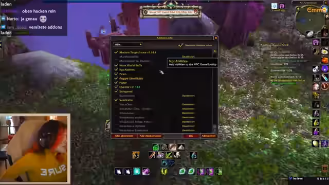 03:08:07Unit Scan (Todeskopf-Icon) zeigt Mob-Informationen wie Level, Todesfälle und Special Abilities an. Ein rotes Rot bei Mob-Info-Toggle aktiviert die Anzeige. Nova World Buffs kommuniziert Elite-Mob-Sichtungen automatisch mit der Gruppe und warnt vor Gefahren. Modern Target Frame zeigt Lebenspunkte und Energie in Prozent an. Diese Addons sind installiert und verbessern die Spielinformationen ohne manuelle Eingriffe.