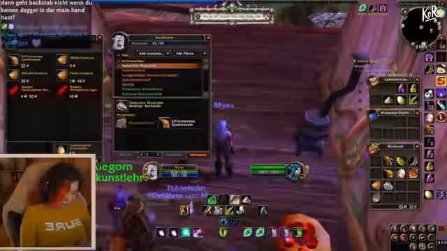 00:44:21Nachdem das technische Problem mit der Katze gelöst ist, möchte der Streamer sofort in den Discord wechseln, um Neulingen zu helfen. Gleichzeitig tauchen beim Start von World of Warcraft Probleme mit einem Add-on auf. Für einen neuen Mitspieler wird der Twitch-Name auf einem falschen Charakter eingetragen, was für Unklarheit sorgt und den Mentor Han verunsichert.