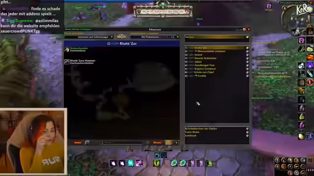 06:48:29Letzte technische Einstellungen werden getroffen: Kamera-Zoom für bessere Sicht und die Verwendung desselben PCs am nächsten Tag, um Addon-Einstellungen zu erhalten. Rose wird eine Addon-Liste für spätere Referenz zugesendet. mowky verabschiedet sich mit der Ankündigung, das Event um 11 Uhr zu starten (ursprünglich 10 Uhr), und ermutigt zur Teilnahme an der WoW-Grinderei. Die Gilde 'Sauer Crowd' wird als geschlossene Streamer-Runde bestätigt, während auf dem Server generelle Interaktion mit Fremden möglich bleibt.