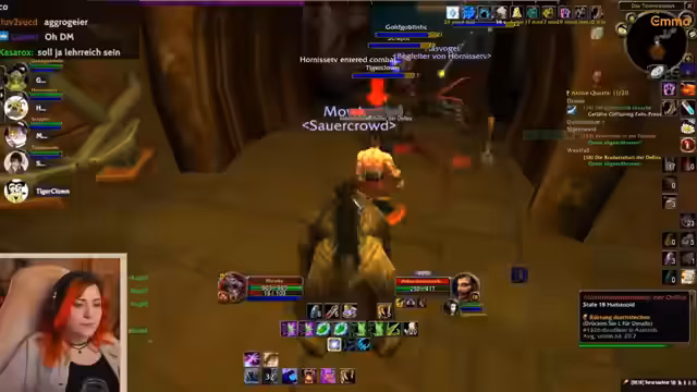 09:37:20Die Gruppe trifft auf den Boss 'Lord Cobra', der sich in eine Schlange verwandelt, und später auf 'Lord Serpentis', den Endboss der Instanz. Während des Kampfes gegen den großen Murloc-Boss wird die Anforderung deutlich, Aggro zu managen und Schaden zu verteilen. Nach dem Sieg über den Endboss gibt es eine Diskussion über den获得的物品, insbesondere um einen Ring mit 'Insolvenzkraft'. Der Streamer beansprucht den Ring für sich, da er den meisten Schaden gemacht hat, was zu einem humorvollen Streit mit dem Namen 'Sekte' im Chat führt. Es folgt ein Event mit einer Eskort-Quest für einen Tauren, bei dem ein großer Murloc-Boss gespawnt wird.