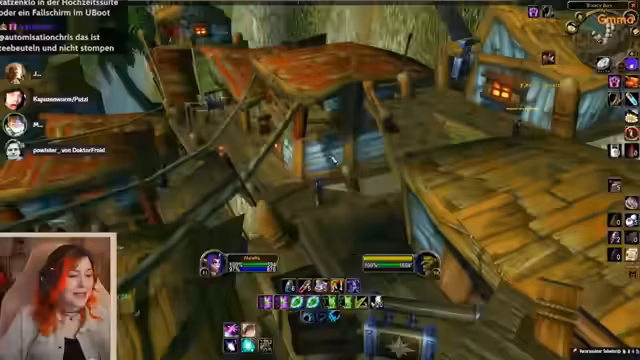 08:25:37Die Gruppe erreicht den Zielort 'Booty Bay' in World of Warcraft nach einer Schiffsfahrt. Der Streamer und seine Mitspieler treffen ein, und die Stimmung ist gelöst und humorvoll. Es werden spielerische Flirts im Chat getätigt und das Ziel der nächsten Mission, die 'Höhle des Wehklagens', angesprochen. Gleichzeitig wird ein weiterer Port für die Gruppe organisiert, der spezielle Ressourcen wie Seelensteine verbraucht, was die Organisationstiefe des Spiels zeigt.