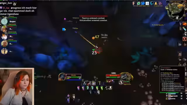 02:50:26Der Streamer kehrt zum Gameplay von World of Warcraft zurück und levelt mit den Zuschauern Jen und Nagura im Gebiet Westfall. Es wird über Quests wie die 'Bruderschaft der Defias' gesprochen und die Herausforderungen des Levelns in einer Gruppe erörtert. Parallel dazu interagiert der Streamer intensiv mit dem Chat, quatscht über verschiedene Themen, zeigt Erfolge wie das Erreichen von Level 20 und reagiert auf die Reaktionen der Zuschauer.