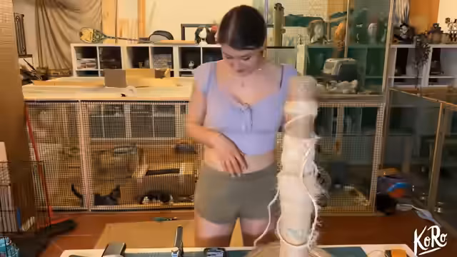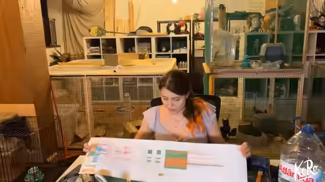 04:34:30Mowky berichtet über den Fortschritt ihrer Cosplays und äußert Erschöpfung. Sie hat einen externen Stick für SIM-Karten erhalten. Sie plant, die Werwolf-Teile am nächsten Tag und das nächste Teil am Sonntag zu bearbeiten, da sie bis Donnerstag, ihrem Flugtag zu Pancake, alles fertig haben muss. Am Freitag wird sie von Pancake zu einem Shooting Event mitgenommen, wo sie das gesamte Wochenende verbringen werden. Sie hofft, in der verbleibenden Zeit noch ein Emergency-Flamme-Kostüm zu erstellen, da sie zwei Collaborations mit Flamme hat. Sie hat bereits die Perücke und Schuhe für Flamme fertig, benötigt aber noch das Kleid und Schmuck. Sie wird die Katzenroutine machen, etwas essen und schlafen gehen. Sie überlegt, ob ein bestimmter Stoff für ein Flamme-Outfit geeignet wäre, verwirft die Idee aber, da er nicht schön fällt. Sie muss dringend nochmal Stoff kaufen gehen, wenn sie sich ein Flamme-Kostüm nähen will.