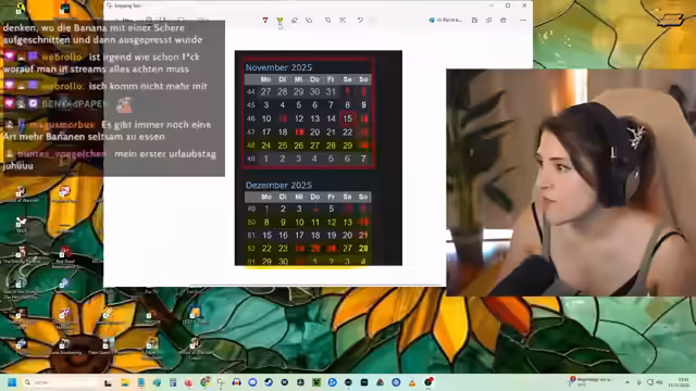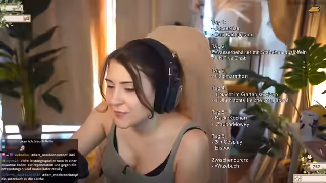 02:12:07Während der Vorbereitung auf die Gameshow treten technische Probleme mit dem Mikrofon auf, das zunächst zu leise ist. Die Streamerin äußert ihre Begeisterung für Quizshow-Formate und plant, einen Greenscreen für einen Gameshow-Hintergrund zu verwenden. Sie sucht nach dummen und übertriebenen Elementen für die Show, wie einen Buzzer, einen Yippie-Sound und einen Wow-Sound. Ein übertrieben buntes Outfit im Stil der 90er-Jahre wird als Teil des Gameshow-Designs präsentiert. Die Streamerin kämpft mit dem Einbinden von Grafiken und Soundeffekten, da sie sich nicht gut mit Technik auskennt. Sie möchte, dass die Gameshow bewusst 'scuffed' (unprofessionell) aussieht, um dem Trend entgegenzuwirken, dass Twitch immer mehr wie Fernsehen wird. Die Teilnehmerinnen Jen und Panik-Fee werden eingeladen, wobei ihre Namen humorvoll verfremdet werden (Jen-Miam und Panik-Tee). Die Gameshow soll um 18 Uhr beginnen, und die Streamerin ist bereits gespannt auf das Chaos, das entstehen wird, da dies genau der gewünschte Vibe für das Format ist.