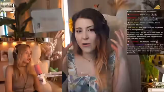 01:13:08Nach dem Wechsel zum PC startet ein gemeinsames Gespräch mit Jen. Zuerst wird über Romantik diskutiert, wobei Jen sehr romantisch ist und Rosenblätter und Schokoschrift als浪漫 empfindet. Streamer hingegen ist pragmatischer und würde die Aufräumarbeit der Rose in den Vordergrund stellen. Beide unterhalten sich über Alltagsdinge wie das Kochen und Haarepflege.