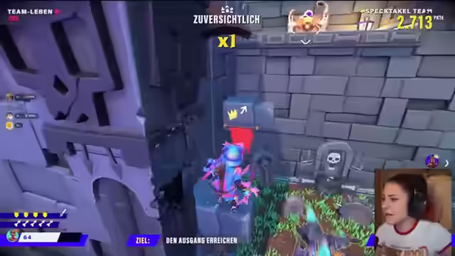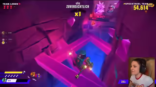 02:17:16Das Team betritt den ersten Dungeon und muss kleine Rätsel lösen. Die Spielerinnen sind mit Armbrüsten ausgestattet und sollen sich gegenseitig unterstützen, anstatt sich zu behindern. Es wird erklärt, dass coole Moves und das Zerstören von Objekten mit Bomben zusätzliche Punkte bringen. Es wird vermutet, dass es kein Friendly Fire gibt. Die Gruppe entdeckt, dass man sich gegenseitig auf die Köpfe steigen kann, was zu chaotischen Situationen führt. Es werden Heiltränke gefunden und Türen aufgebrochen. Ein Portal führt zu einer Gegnergruppe, die sofort angegriffen wird. Die Streamerin lobt das Tutorial des Spiels für seine Animationen. Es wird ein Mechanismus entdeckt, bei dem sich jeder in ein Feld stellen kann, um einen Vorteil zu erhalten. Die Gruppe findet Schienen und zerplatzende Gegner, die in Steaks zerfallen. Ein Rätsel mit zwei Köpfen wird entdeckt, das jedoch noch nicht gelöst werden kann. Die unterschiedlichen Teamfähigkeiten der Spielerinnen werden humorvoll kommentiert.