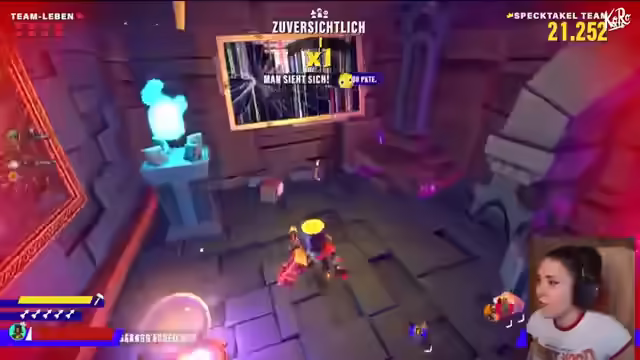 02:55:03Die Gruppe konzentriert sich auf die Erkundung und das Finden versteckter Gegenstände, wobei eine Spielerin heimlich eine Kiste findet. Es wird der Wunsch geäußert, eine Statue aus dem Spiel im eigenen Garten zu haben. Die Gruppe löst Rätsel, um voranzukommen, und erhält eine Bronze-Krufe. Ein Rätsel mit einem Grabstein und einem Brunnen wird gelöst, indem Spiegelbilder korrekt angeordnet werden. Es werden Glasfenster zerstört, um Gold zu finden. Die Gruppe steht vor der Herausforderung, einen Stern zu erreichen, der schwer zugänglich ist. Verschiedene Versuche, einen bestimmten Punkt zu erreichen, scheitern zunächst, bis eine Spielerin es schließlich schafft, indem sie auf einer anderen Spielerin steht. Es wird festgestellt, dass ein Texture-Fehler vorliegt. Die Gruppe steht vor zeitlich begrenzten Herausforderungen und muss zusammenarbeiten, um Rätsel zu lösen, bei denen Knöpfe gedrückt werden müssen. Ein Gesicht muss korrekt zusammengesetzt werden, um Geld zu erhalten. Es werden weitere versteckte Kronen und Kisten entdeckt, die schwer zu erreichen sind. Die Gruppe navigiert durch schwierige Jumpy-Runny-Abschnitte und stößt dabei auf Hindernisse und Herausforderungen. Ein Easter Egg in Form eines Regieraums wird entdeckt, was die Idee einer TV-Show aufwirft. Die Gruppe stellt sich auf ein bestimmtes Ding, erhält aber nur drei Enten, was auf verpasste Gelegenheiten hinweist. Aufgrund von Fehlern erhält die Gruppe nur eine Holzplanke als Trophäe. Die Gruppe betrachtet ihre freigespielten Rüstungen und Herausforderungen und versucht, diese abzuholen. Es werden neue Gedanken und spektakuläre Einlagen entdeckt, darunter ein widerwärtiger Rülpser. Die Gruppe rüstet gefundene Gegenstände aus und entdeckt Team-Chemie-Effekte. Es wird ein Rave Yard besucht, wo Posen und Waffen gekauft werden können. Die Charaktere können durch gefundene Gegenstände aufgewertet werden.