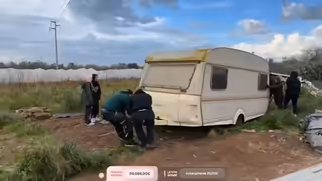 05:17:34Nach der erfolgreichen Katzenrettung wird ein geschenkter Wohnwagen als Transportmittel genutzt, um die Tiere sicher unterzubringen. Das Team ist damit beschäftigt, den Wohnwagen umzuschieben und zu positionieren. Dies erfordert erhebliche physische Anstrengungen und die Zusammenarbeit mehrer Helfer. Es wird über die richtige Positionierung des Wohnwagens debattiert, um ein effektives und sicheres Laden der Tiere zu gewährleisten.