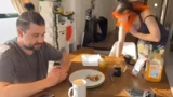 04:15:25Aufgrund fehlender oder unbrauchbarer Utensilien, wie eines dreckigen Raclette-Aufsatzes, werden kreative Lösungen gesucht. Daniel leidet unter einer 'Bacon-Krise', da nur 'stückiger Bacon' verfügbar war. Es werden humorvolle Ersatzideen wie Erdnüsse, Müsli oder Lasagneplatten als knusprige Beilage ins Spiel gebracht, während Daniel schließlich losgeschickt wird, um dringend einzukaufen.