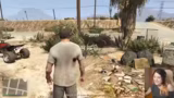 01:34:14Nachdem die erste Mission geschafft ist, beginnt die eigentliche Handlung rund um die Charaktere Michael, Franklin und Trevor. Die Streamerin taucht in die Vorstellungswelt der Figuren ein und ist von Michaels Midlife-Crisis und Trevors chaotischem Verhalten fasziniert. Sie erlebt eine Wendung, als Michael seinen Partner zu überlisten scheint, was sie als 'hintergangen' fühlen lässt. Gleichzeitig findet sie Gefallen an der offenen Welt und den alltäglichen Details, wie der Katze, die über die Straße rennt.