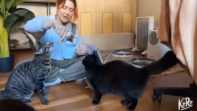 01:12:35Die Tablettenvergabe gestaltet sich unerwartet einfach. Die Streamerin hat den Trick entdeckt, die bitteren Tabletten in ein sehr kleines Stück Salami zu wickeln, die die Katzen fressen. Mehrere Katzen nehmen so ihre Medizin widerstandslos. Die Tabletten sind Entwurmungsmittel, da die Tiere zuvor Straßenkatzen waren. Die schwarzen Katzen werden als flauschig und zutraulich beschrieben, was auf eine positive Entwicklung hinweist.