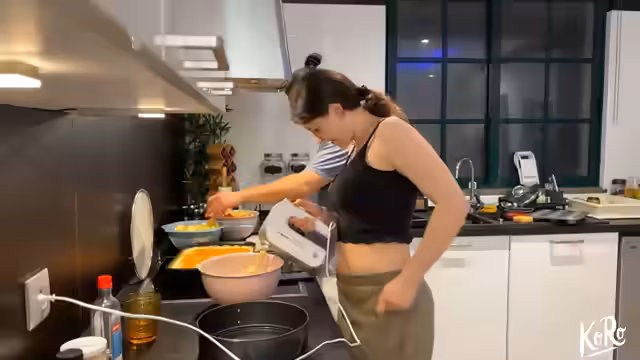 02:26:26Die Streamerin ist frustriert über den misslungenen Apfelkuchen, der mehr Apfel als Kuchen ist. Sie beklagt sich über das Rezept und die Schwierigkeiten beim Unterheben der Äpfel in den Teig. Daniel schlägt vor, den Kuchen in die Pfanne zu werfen und drängt darauf, etwas Richtiges zu essen. Die Streamerin ist traurig über den misslungenen Kuchen und die allgemeine chaotische Situation. Trotz der Frustration wird der Kuchen humorvoll als 'bester Apfelkuchen, den wir je gegessen haben' bezeichnet, exklusiv für die Nachbarn.