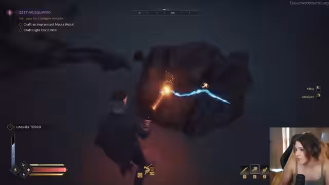 02:49:30Der Streamer muss sich in der hitzigen Wüste heilen, nachdem er zu lange in der Sonne gestanden hat. Er stellt fest, dass die Hitze im Spiel eine echte Gefahr darstellt und führt eine Sonnenstich-Mechanik vor. Um sich zu schützen, zieht er sich einen Helm an. Er erkundet die Umgebung und versucht, Basen anderer Spieler zu finden, um Ressourcen zu plündern. Er stellt fest, dass die Wüste im Spiel eine besondere Herausforderung darstellt, da sie ressourcenarm ist und die Hitze eine ständige Bedrohung ist.