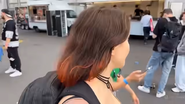 00:00:00Während des Rundgangs machen die Streamer an einem Essensstand Halt, um Pizza zu essen. Dies führt zu einer Pause im Stream. Parallel dazu tauchen wiederholt technische Schwierigkeiten auf, darunter eine instabile Internetverbindung und ein leerer Akku des iPhones. Der Streamer deutet an, dass für zukünftige Events eine bessere technische Ausrüstung, wie ein Gimbal und mehrere SIM-Karten, notwendig sein wird.