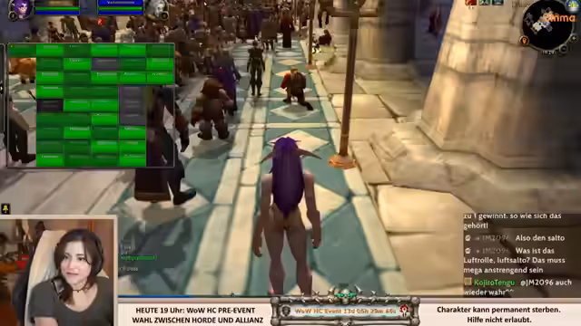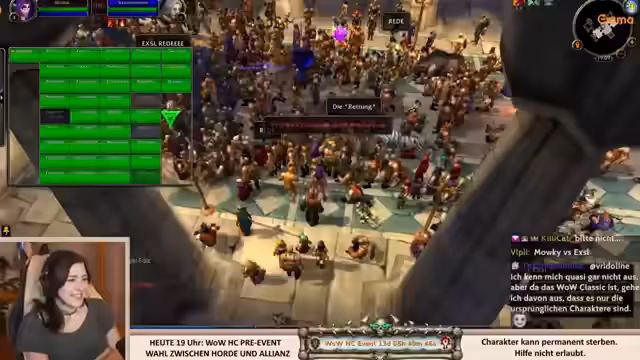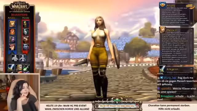 00:29:52Eine intensive Diskussion entbrennt über die Wahl zwischen Horde und Allianz für das kommende WoW-Event. Der Streamer plädiert für die Allianz, während andere Teilnehmer wie Jen sich für die Horde entscheiden. Es geht um lore-technische Vorlieben, Klassenkombinationen und die emotionale Bindung an die Fraktionen. Besonders hervorgehoben wird die Rolle von Hanno als Entscheidungsträger und dessen Beziehung zu Tamina.