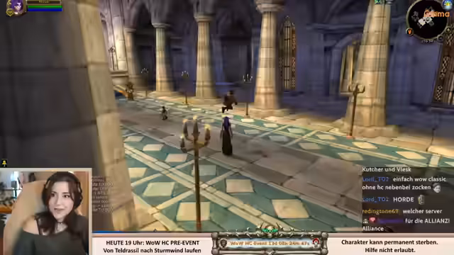02:07:38Die Organisation des gemeinsamen Hardcore-Streams wird besprochen: Der Streamer lädt Spieler wie Kerak, Paul und Jens ein und diskutiert die Serverwahl (Soulkeeper). Es entsteht eine Debatte zwischen Allianz und Horde, wobei die Allianz für schönere Städte und weniger Fahrstühle gelobt wird, während die Horde für ihre einzigartige Atmosphäre geschätzt wird. Klassen wie Paladin, Priester, Druide und Schurke werden diskutiert, wobei der Streamer selbst einen Schurken spielen möchte. Technische Aspekte wie Discord-Overlays und Gruppenorganisation werden geklärt, und die bevorstehende Raid-Einladung wird vorbereitet.