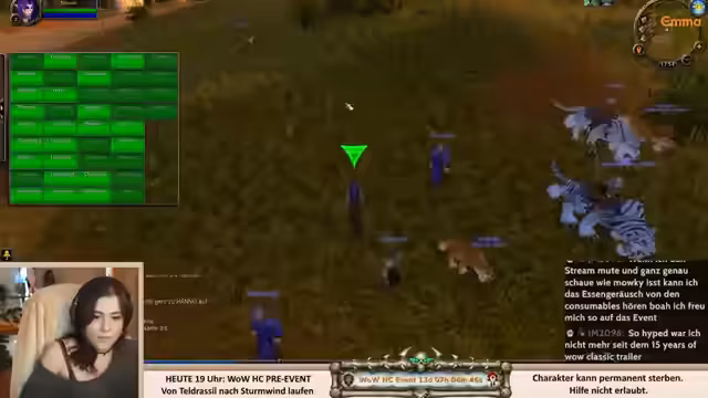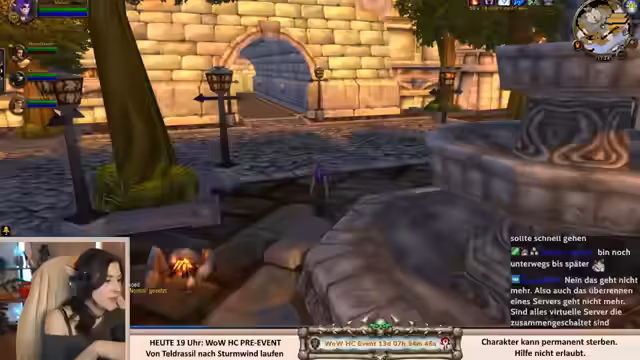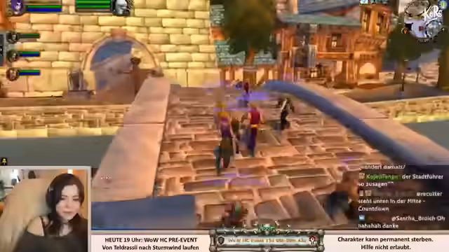 02:39:48Der gemeinsame Lauf zum Stormwind beginnt, jedoch herrscht Chaos durch unterschiedliche Layer und Überfüllung. Raid-Gruppen werden gebildet, aber technische Grenzen (z.B. 40 Spieler pro Raid) führen zu Verwirrung. Todesfälle, wie der von Nick, werden beklagt, aber mit Humor kommentiert. Teilnehmer werden ermutigt, In-Game-Musik auf Maximum zu schalten, um die Atmosphäre zu verstärken. Trotz Problemen wie vollen Layern und Tod durch Umgebungsschäden (z.B. Wölfe) bleibt die Stimmung euphorisch, und Stormwind füllt sich mit hunderten Spielern.