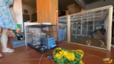 01:48:12Während des Einrichtens des Käfigs flieht eine Klette und versteckt sich. Der Streamer nutzt die Gelegenheit, um den Tieren eine kurze, überwachte Exploration eines anderen Raumes zu ermöglichen. Die Katze zeigt sich zunächst eingeschüchtert, gefolgt von großem Interesse an der neuen Umgebung und den anderen Tieren. Dieses Verhalten bestätigt den Plan, die Tiere schrittweise an neue Reize und Situationen zu gewöhnen.