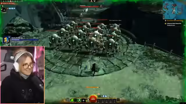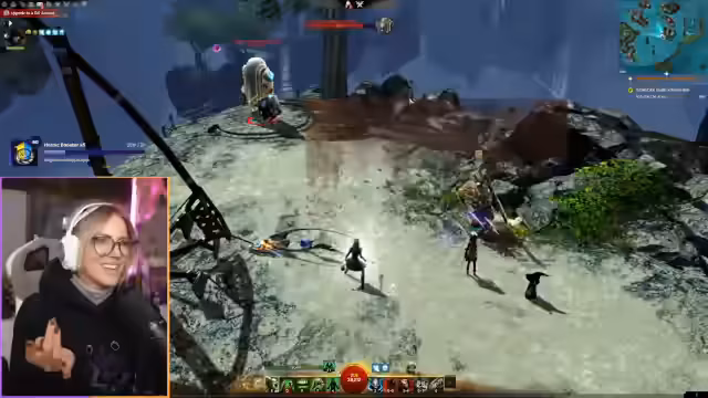 03:56:20Der Stream wechselt vom Housing-Bau zum eigentlichen Gameplay von Guild Wars 2. Der Streamer hat ein Sponsoring-Projekt, bei dem er einen erfahrenen Spieler namens Muck trifft. Beide stellen sich vor und sprechen über ihre MMO-Hintergründe. Es werden Belohnungen für die Zuschauer angekündigt, die ihre Konten verbinden. Der Fokus liegt auf dem Austausch über Spielmechaniken, Klassen und die horizontalen Progression des Spiels.