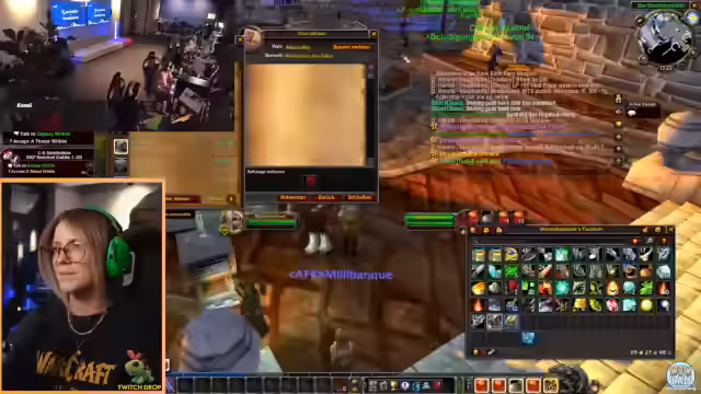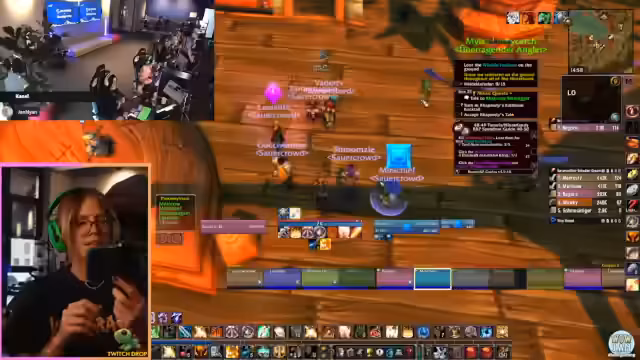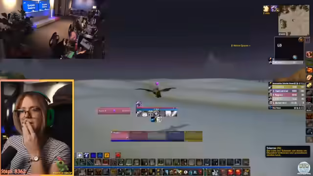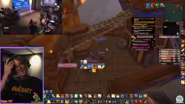 03:12:27Die Unterhaltung wechselt zum Gameplay von World of Warcraft. Der Streamer farmt Rieseneier in Talaris Gadgetzan, wobei es zu technischen Problemen wie LUA-Fehlern und Verzögerungen bei den Camps kommt. Er organisiert eine Gruppe für ein Dungeon, sucht nach einem Tank und plant, im Anschluss Berufe wie Schneiderei und Bergbau zu nutzen, was durch den Onyx-Buff optimiert werden soll.