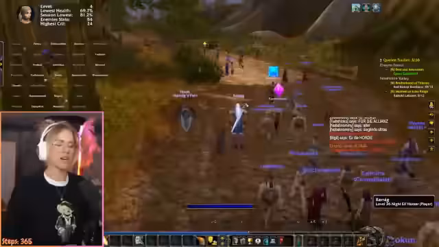 01:36:47Das Sauerkraut-Event beginnt mit der Charaktererstellung in Stormwind. Der Streamer legt Wert darauf, dass alle Teilnehmer im selben Layer starten. Die Organisation ist etwas chaotisch, da viele noch auf dem Weg zum Startgebiet sind und die technische Umsetzung des Overlays und der Votings weiterhin diskutiert wird. Der Streamer plant, den Event zu genießen und hat humorvoll die Androhung, bei Wahl der Allianz Cosplay zu zeigen.