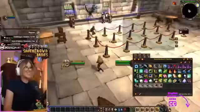 07:21:31Bei der Organisation seines Inventars stößt der Streamer auf Probleme mit der Bank, die sich wie ein "Mülleimer" anfühlt, und plant, dies mit Hilfe eines erfahrenen Spielers zu säubern. Er konzentriert sich auf seine aktuellen Quests, insbesondere auf die in Moonglade, bei der er auf eine missliche Lage stößt, da er den Ruf nicht besitzt, um die entsprechende Höhle durchqueren zu dürfen. Er unterhält sich über benötigte Ressourcen und strategische Vorgehensweisen.