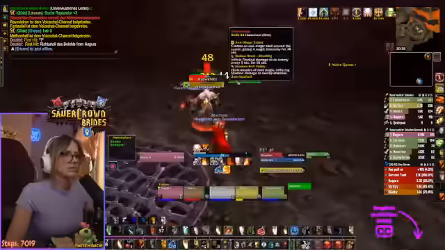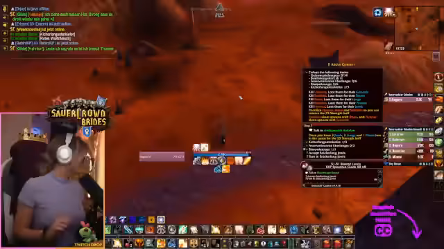 02:53:18Der Streamer ist mit dem Farming von spezifischen Items, insbesondere Seidenstoff, unzufrieden und frustriert. Er stellt fest, dass die Mobs in seiner Umgebung keine Seidenstoff droppen, obwohl ihm das versprochen wurde. Er überlegt, ob es sich lohnt, nach Stormwind zu fliegen, um die Ressource von der Gildenbank zu holen, entscheidet sich aber dagegen, da es zu zeitintensiv wäre. Stattdessen konzentriert er sich auf seine Quests, wie die Abgabe in Sengenden Schlucht und die Vorbereitung auf die BRD-Dungeons.