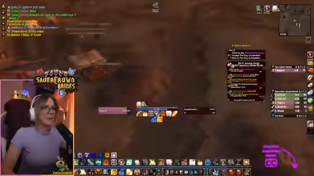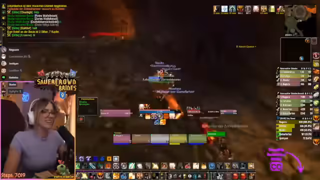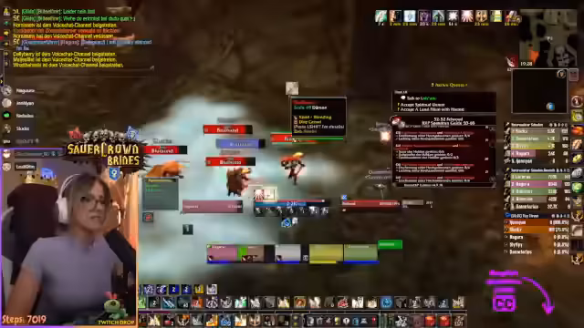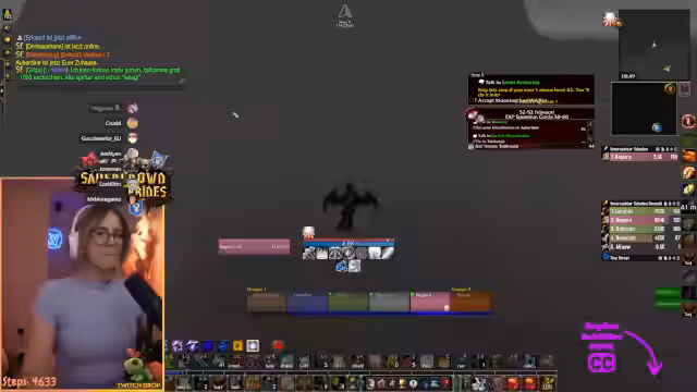 04:19:13Der Streamer und seine Gruppe bereiten eine Reise zum Gebiet Teufelswald vor. Er muss einen kurzen Umweg machen, um mehrere Quests abzugeben und einen Ruhestein zu setzen. Dabei kommt es zu technischen Schwierigkeiten mit der Chat-Kommunikation und er bittet um ruhiges Verhalten, da er zahlreiche Anfragen gleichzeitig bearbeiten muss und eine Portalwelle vorbereitet.