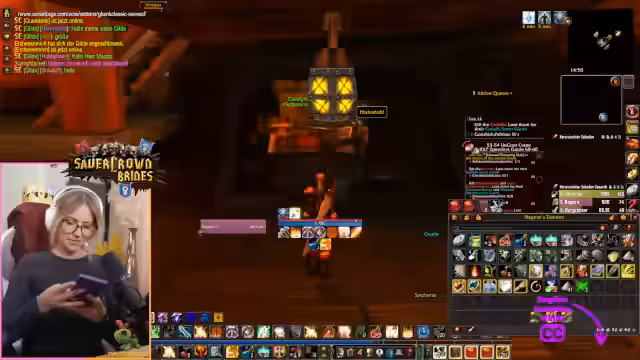 11:20:59Der Streamer, in seiner Rolle als Gildenleiterin, diskutiert die Organisation der Gildenbank. Es besteht das Problem, dass die normale Bank fast leer ist, während die von "Goldgoblin" verwaltete Rezeptbank voll ist. Sie schlägt vor, die Gegenstände direkt vor dem wöchentlichen "Townhall Meeting" zu verteilen, indem die Leute informiert werden und sich in Sturmbind treffen. Um die Transparenz zu verbessern, wird das Addon "Guild Book Classic Era" empfohlen, um die Berufe und Fertigkeiten der Gildenmitglieder im Überblick zu behalten.