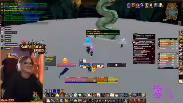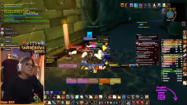 07:45:18Die Zusammenarbeit in der Gilde wird stärker betont. Ein zweiter Bank-Schar wurde hinzugefügt, um die Ressourcen zu verwalten. Der Streamer erwähnt, wie er in Minecraft das Problem von Disconnects lösen kann, aber in WoW ist das nicht möglich. Die Gruppenmitglieder sterben oft, aber das ist in Ordnung. Der Streamer ist erleichtert, dass die Gruppe den schwierigen Teil des Raids bewältigt hat, und macht sich Sorgen um die verbleibenden Gegner.