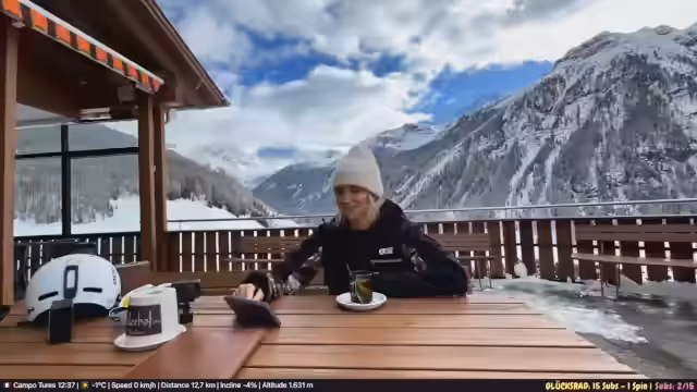 01:18:06Nach mehreren Abfahrten geht der Streamer ins Restaurant. Er unterhält sich mit der Bedienung über die Speisekarte, auf der klassische Gerichte wie Wiener Schnitzel, Knödel und Gulasch angeboten werden. Die Preise werden für südtiroler Verhältnisse als angemessen bewertet. Nach der Pause ist der Plan, den restlichen der drei Stunden mit weiteren Skifahrten zu verbringen und möglicherweise Drohnenaufnahmen zu machen, falls sich das Wetter weiter verbessert. Die technische Konfiguration der Kameras wird weiterhin angepasst.