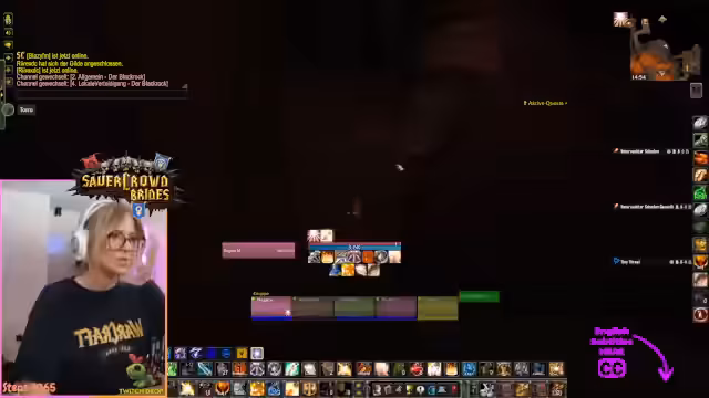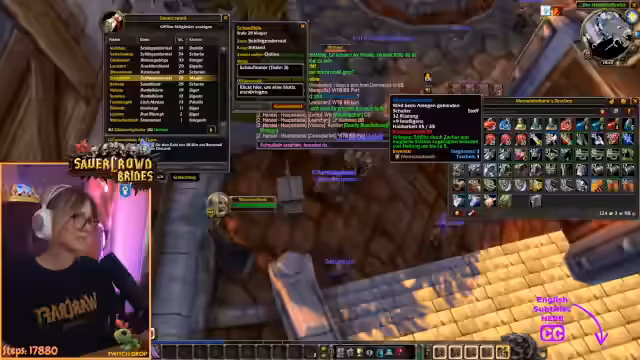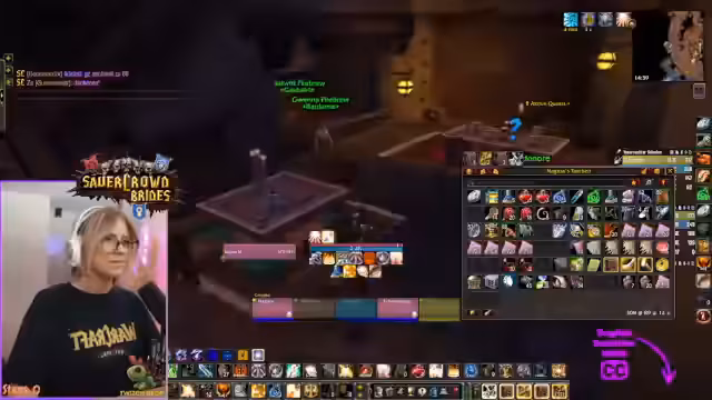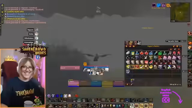 06:42:19Während des World of Warcraft-Events verteilt Nagula Gegenstände an die Community, indem sie die Bank durchsucht und Items an Gildenmitglieder weiterleitet. Dabei stellt sie fest, dass viele Druiden- und Schamanen-Ausrüstung niemanden braucht und stattdessen entzaubert oder verkauft wird. Sie versucht gezielt, niedrigstufige Charaktere wie Geekon auszustatten, benötigt jedoch mehr Stoff- und Ledermaterial.