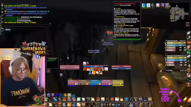 00:14:39Nach dem emotionalen Schock konzentriert sich die Streamerin auf den weiteren Spielverlauf und Dungeon-Strategien. Es werden die Mobs im Dungeon "Scholomance" analysiert, insbesondere die Gefahren durch Banshees und Gargoyles, die durch ihren Silence- und Area-of-Effect-Angriffe für Wipes sorgen können. Die Diskussion dreht sich um die Pull-Techniken, die Bedeutung von Crowd-Control und den Kampf gegen den Boss "Rattlegore". Die Streamerin gibt Tipps zum Management von Mana, der Nutzung von Skills wie "Segen der Rettung" und der Notwendigkeit von präzisem Targeting.