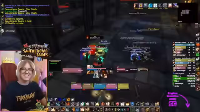 01:52:56Bei der Vorbereitung für den nächsten Dungeon, Scholomance, treten logistische Hürden auf. Es stellt sich heraus, dass der benötigte Schlüssel fehlt und nicht alle Gruppenmitglieder die Vorquest abgeschlossen haben. Die Gruppe ist sich uneinig, wie man vorgehen soll – einige schlagen vor, einen Runner zu schicken, während andere Bedenken wegen der Zeit haben. Die Koordination ist kompliziert, und der Streamer überlegt, ob ein spezifischer Spieler überhaupt noch an dem Run teilnehmen wird oder ob die gesamte Planung umgestellt werden muss.
