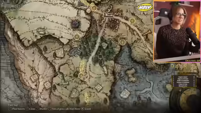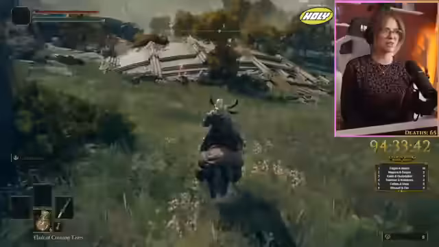 00:16:38Nachdem die technischen Hürden überwunden sind, beginnt der Streamer mit dem Spielen. Er startet in Limgrave, der ersten Region des Spiels, und findet schnell verschiedene Gegenstände und Ressourcen. Ein Fokus liegt auf der Ausrüstung: Er wechselt Rüstung und probiert verschiedene Waffen aus, veräußert aber auch überflüssigen Plunder, um Gold zu sammeln. Er stößt auf einen ersten Boss, den Bluthund, den er nach mehreren Versuchen besiegt. Anschließend reist er zu einem Schmied, um seine Waffe aufzuwerten, stößt aber auf Levelgrenzen.