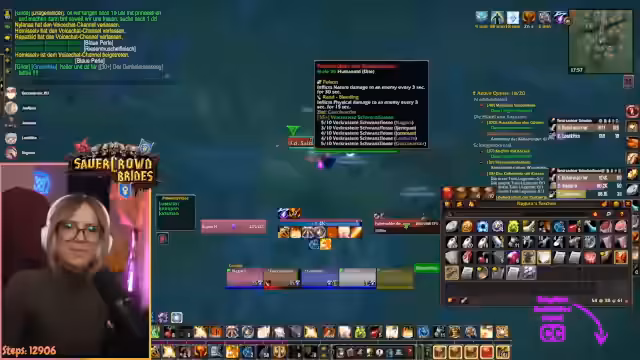 08:06:42Der Streamer spricht über die Fortschritte in Instanzen und die Herausforderungen, die sich dabei ergeben. Es wird erklärt, dass es wichtig ist, nicht gleich sterben zu können, da der Stream sonst endet. Ein Highlight ist der Kampf in einer schwierigen Quest in Booty Bay, wo Wellen von Gorillas spawnen. Nach dem erfolgreichen Abschluss werden in Booty Bay Buffs geholt. Es gibt eine Diskussion über Mechaniken in Gruppen, insbesondere den Aggro-Reset, und die Notwendigkeit, die Mobs nacheinander zu resetten.