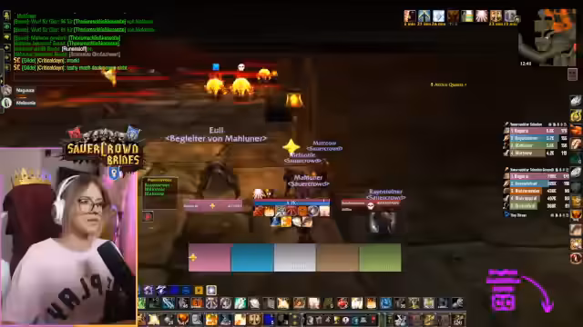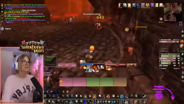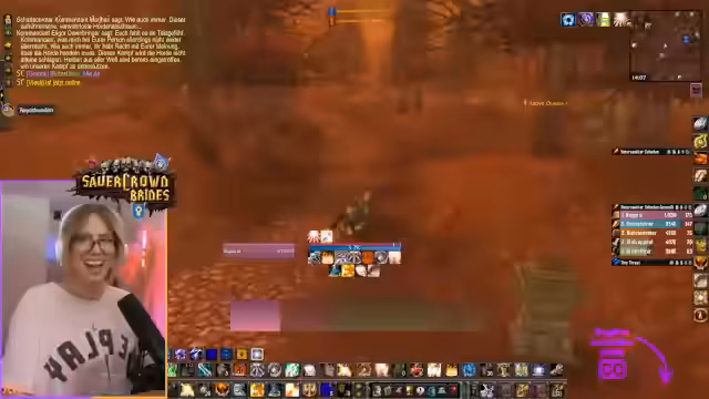 01:29:10Der Stream konzentriert sich auf den Dungeon Blackrock Depths, mit einer speziellen Quest für Molten Core. Der Streamer navigiert durch das Dungeon, betont wichtige Mechaniken wie das Springen in der Lava und eine Prequest, die für den weiteren Verlauf entscheidend ist. Im weiteren Verlauf werden Namen verwechselt,笑语 rund um den Charakter Leonie genannt und es wird über den allgemeinen Spielverlauf im Dungeon gesprochen, während man durch verschiedene Bereiche navigiert.
